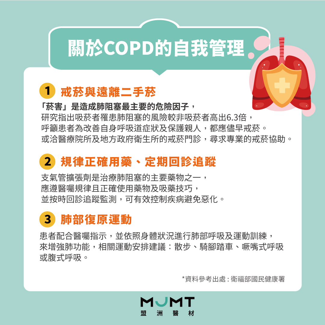 COPD是一個可以控制的疾病。只要勇敢面對,從戒菸開始,配合醫師指示規律用藥和定期追蹤,