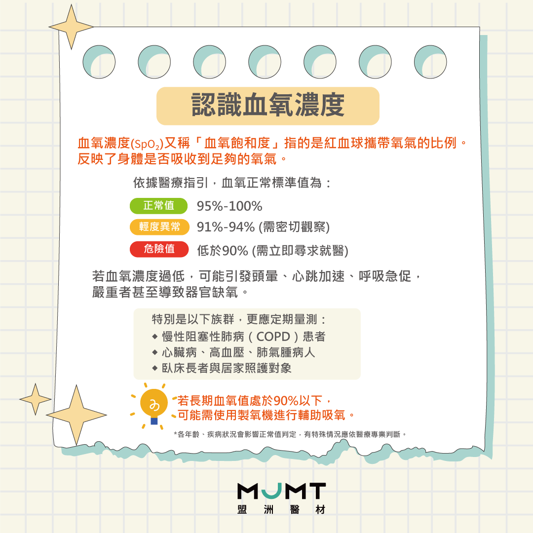 在日常健康檢測中,「血氧濃度」(SpO₂)